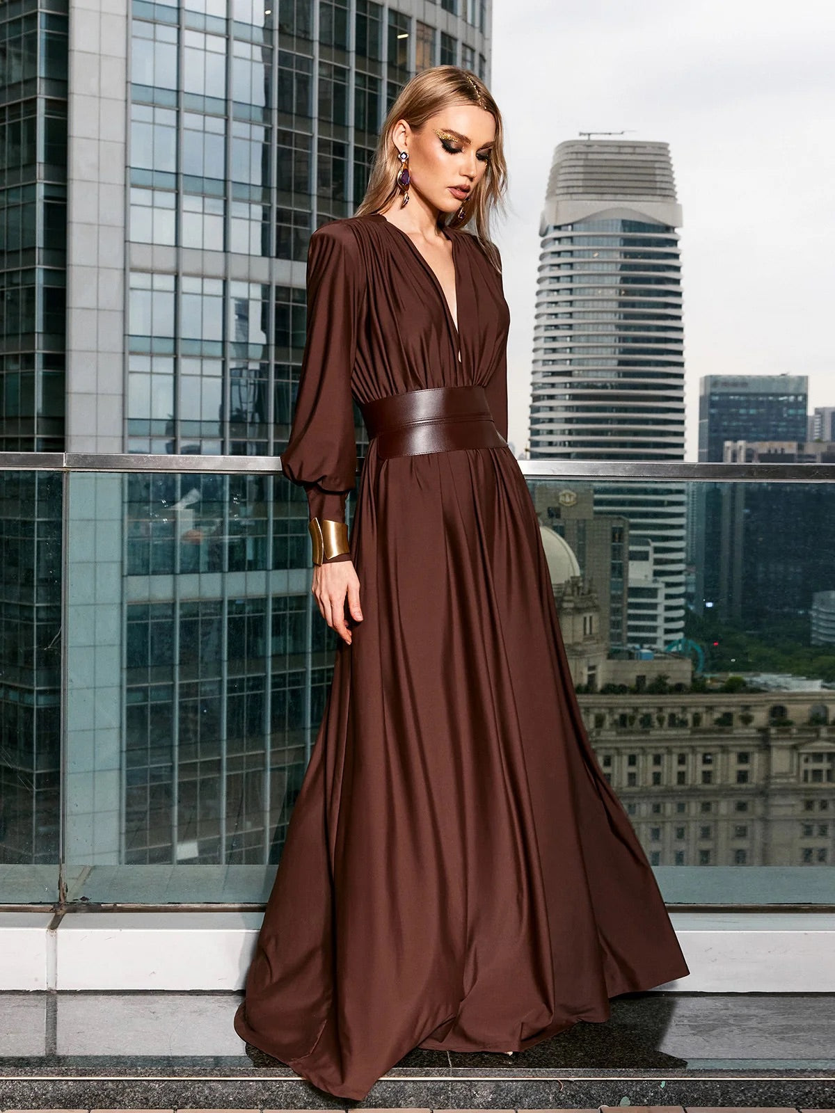 アナベル V ネック ベルト付きマキシドレスでワードローブをアップグレードしましょう。高品質の素材で作られたこのドレスは、どんな場面でもあなたを目立たせます。エレガントな V ネック デザインとベルト付きウエストがあなたの曲線美を強調し、マキシ丈が洗練された雰囲気を添えます。ファッションに敏感な方に最適です。