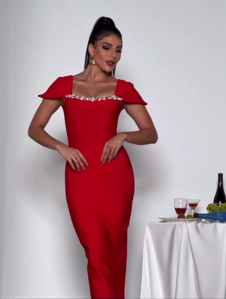 Crystal red bandage maxi dress