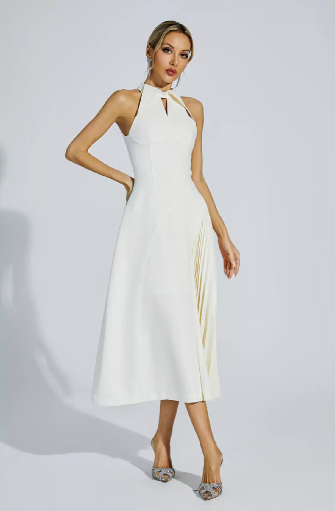 シンシア クリーム ミディドレス