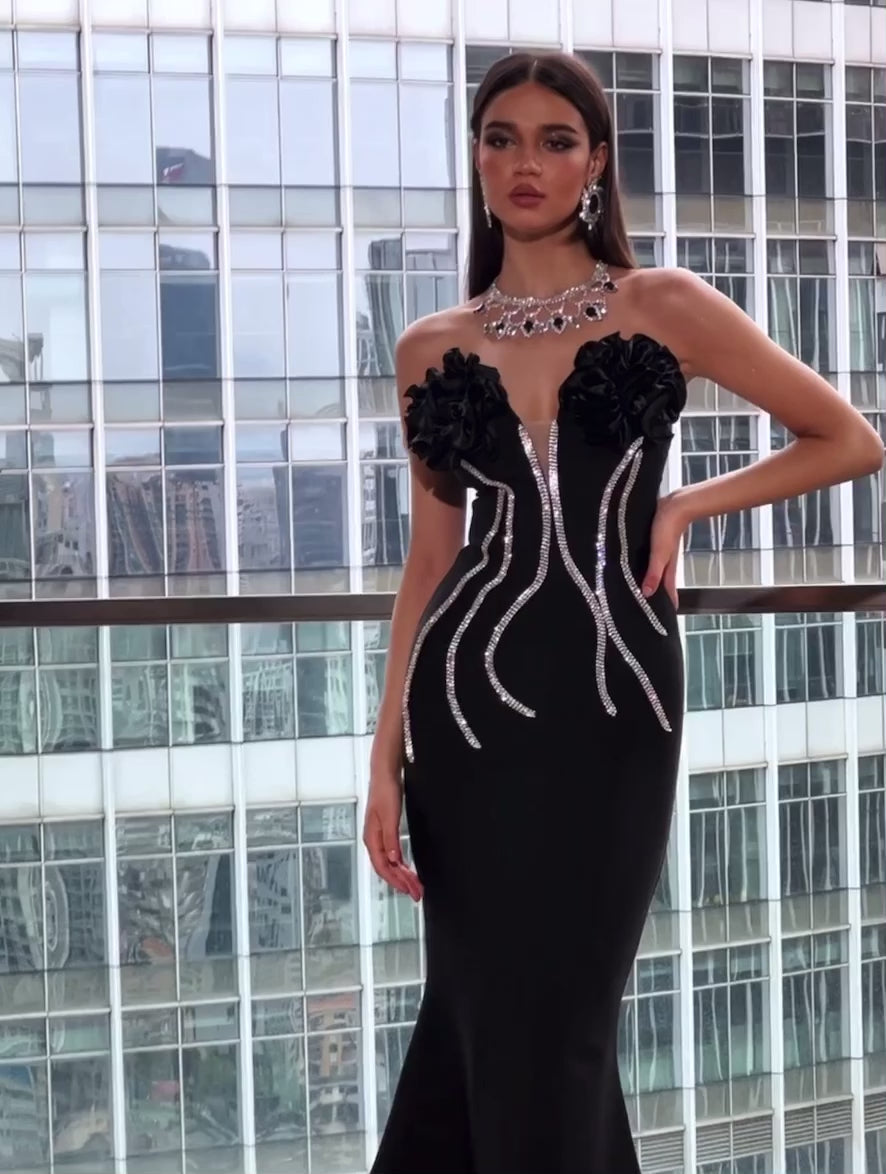 Be a vision of elegance in the Lans Strapless Flower Crystal Maxi Dress. Adorned with intricate crystal detailing and delicate floral accents, this dress will make you stand out at any formal event. Feel confident and beautiful in this stunning maxi dress.