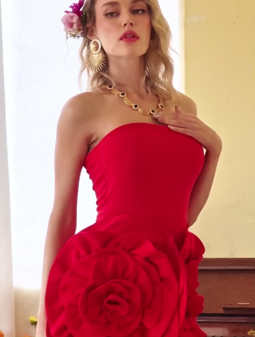 ロリ ストラップレス フラワー ミニ ドレスで贅沢の極みを体験してください。美しい花のディテールで飾られたエレガントなストラップレスのデザインは、洗練さと高級感を醸し出しています。最高級の素材で作られたこのドレスは、特別な機会に最適です。私たちのドレスであなたのスタイルを高めてください。