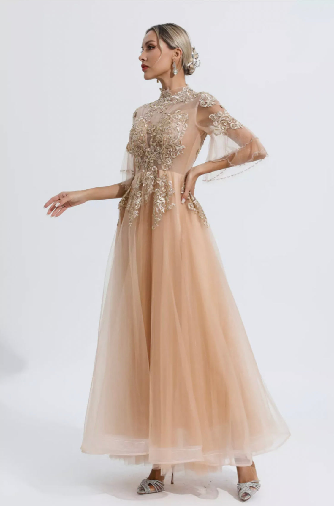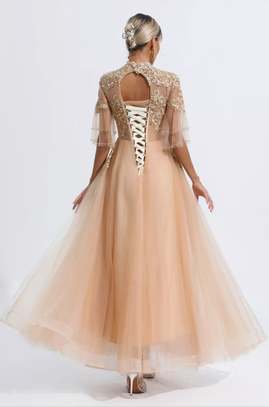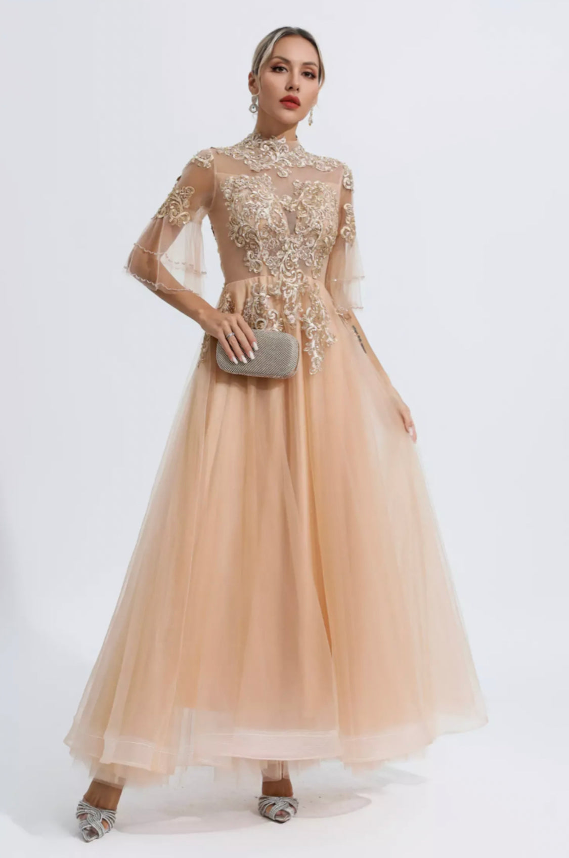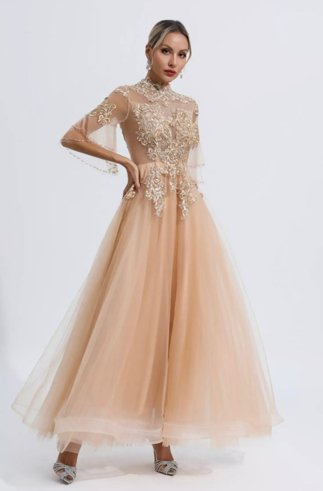 祝賀会に出席する場合でも、イベントの司会を務める場合でも、マリーナ ゴールド エンブロイダリー メッシュ マキシ ドレスは、あなたをスタイリッシュなスタイルに仕上げます。フォーマルな行事やカクテル パーティーに最適なこの魅力的なガウンは、繊細なメッシュ生地に精巧なゴールド エンブロイダリーが施されています。ドレスはあなたの曲線を強調するようにデザインされており、マキシ丈が優雅さを添えています。
