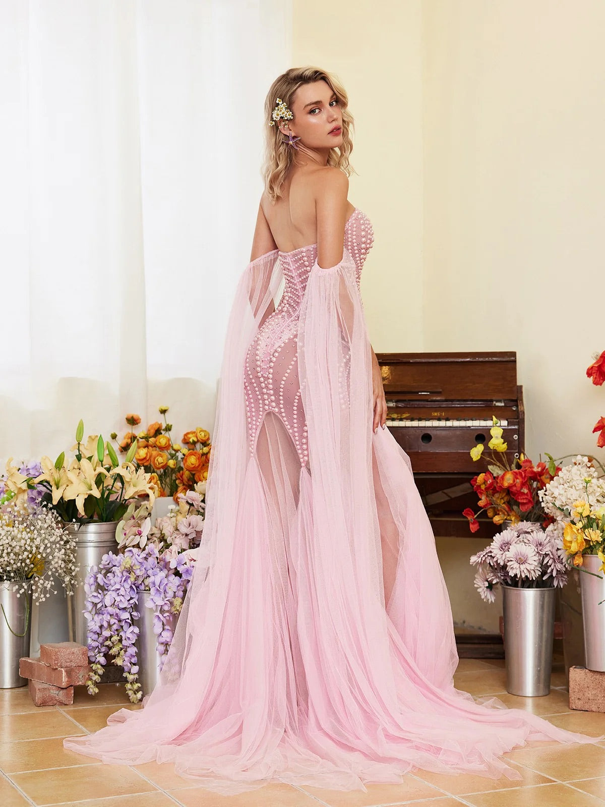 プリスカ パール装飾チュール マキシ ドレスで、純粋な贅沢を満喫してください。この絶妙な作品は、繊細なパールの装飾と、歩くたびに優雅に流れるエレガントなチュールの層が特徴です。この洗練された高級ドレスで、スタイルを高め、どんなイベントでも個性を主張しましょう。
