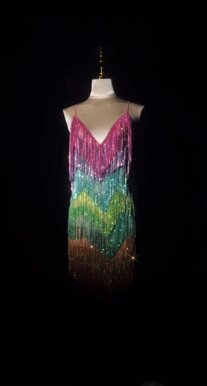 Rainbow crystal fringe mini dress