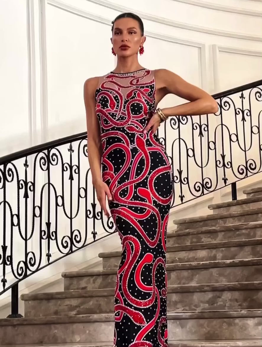 Rhinestone snake maxi dress