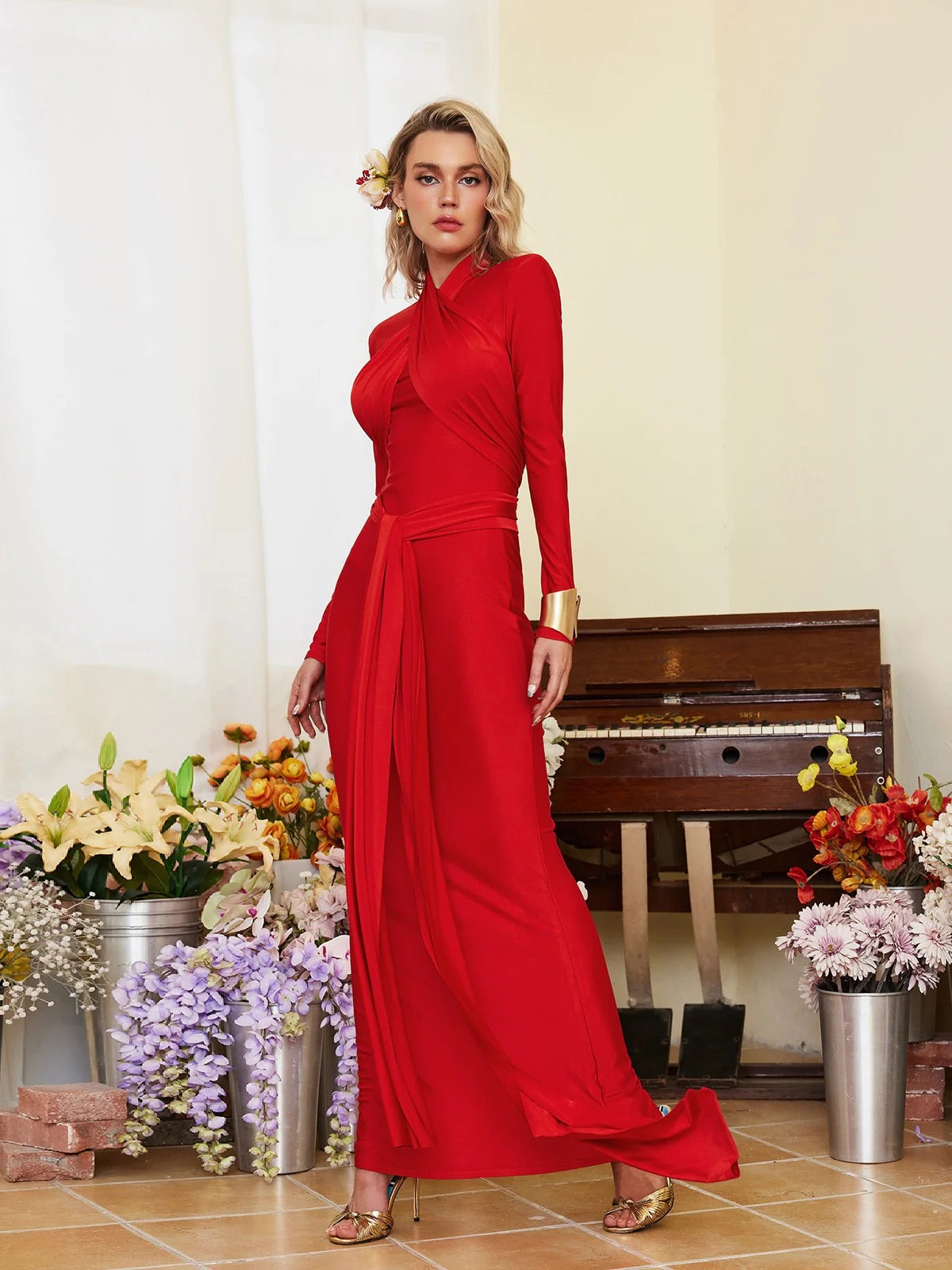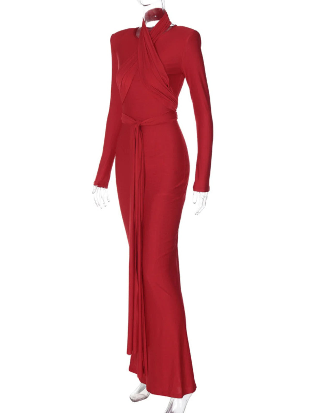 エレガントで高級な sia ホルターネック レースアップ マキシ ドレスをぜひお楽しみください。豪華なレースのディテールとスタイリッシュなホルターネックのデザインがこのドレスを特別な機会に欠かせないものにします。ユニークなレースアップ機能を備えたこのマキシドレスは、ワードローブに洗練されたタッチを加えます。