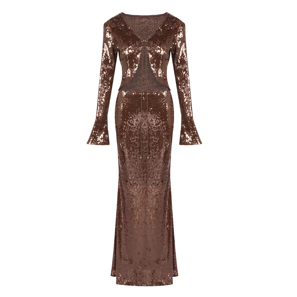 Sierra Bronze Sequin Set Gown