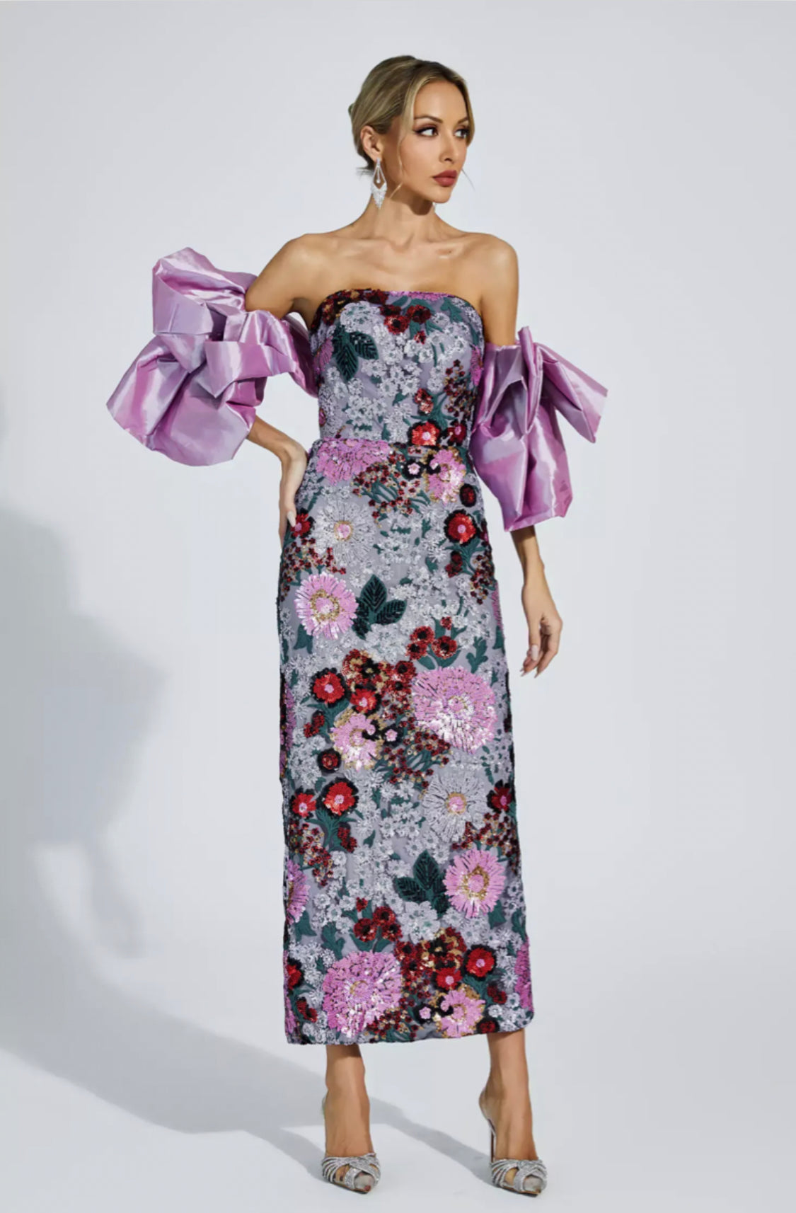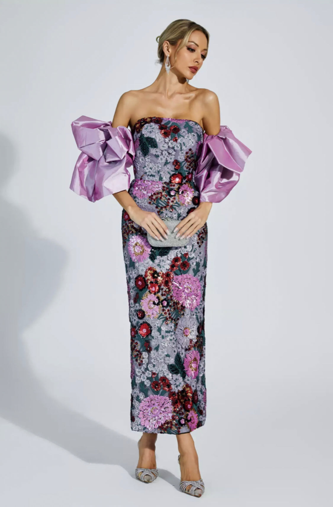 Amelie puff sleeves flower midi dress Size S