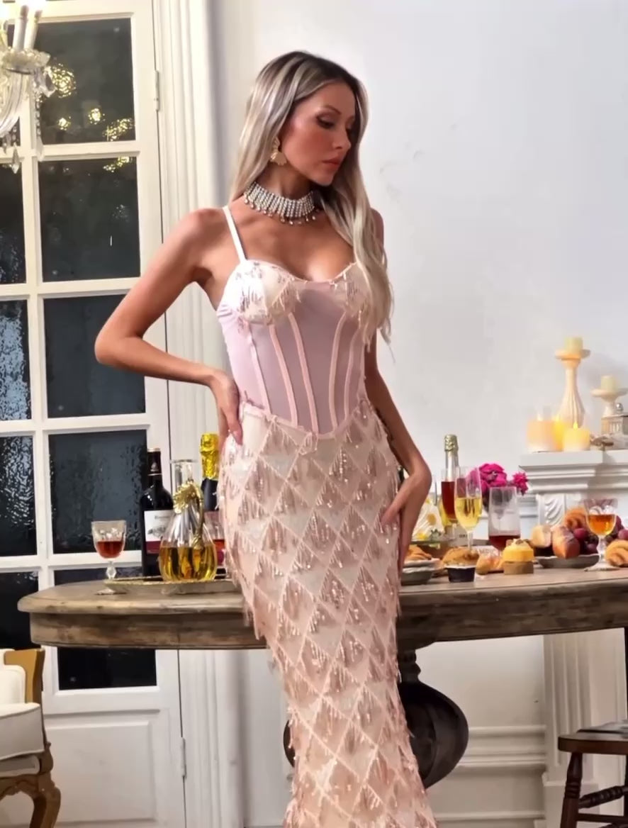 Get ready to make a statement in our Sequin Fringe Maxi Dress! Featuring stunning red sequins and fringe detailing, this dress will turn heads. Stand out at any event and feel confident in this showstopping piece. Elevate your style and make a statement with Ottis.