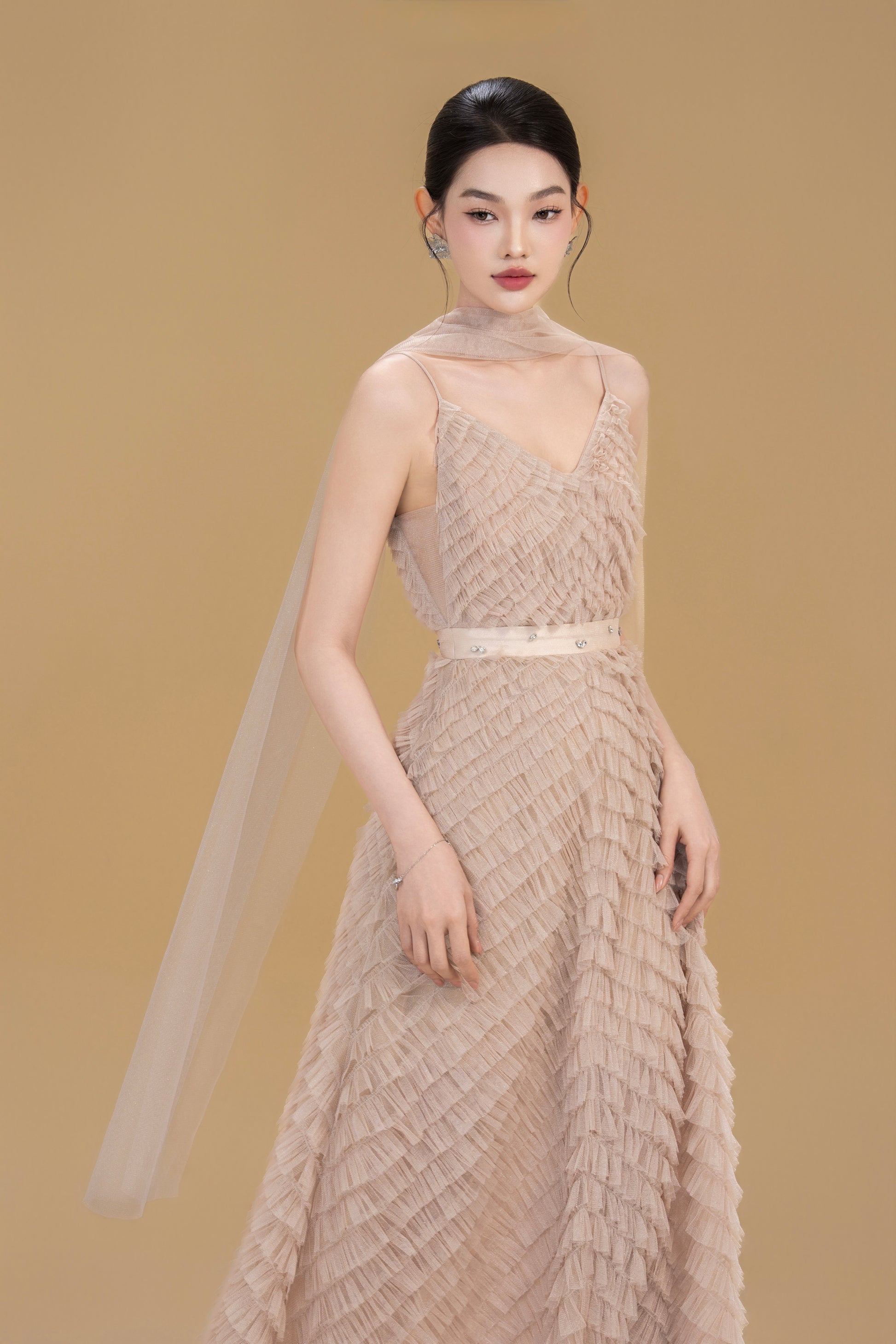 - Delicate layered ruffle texture throughout