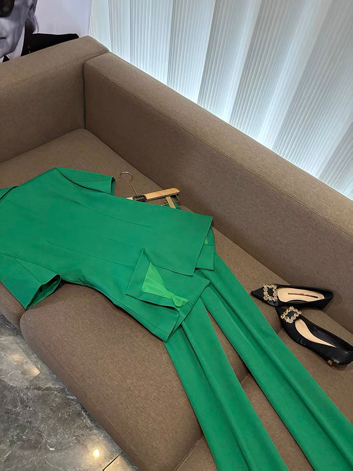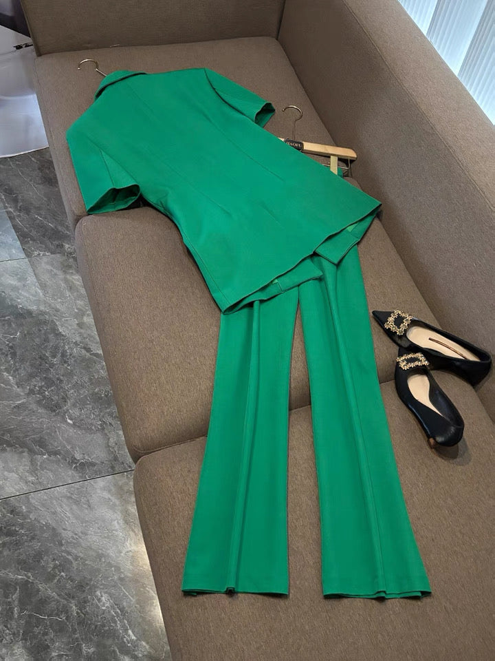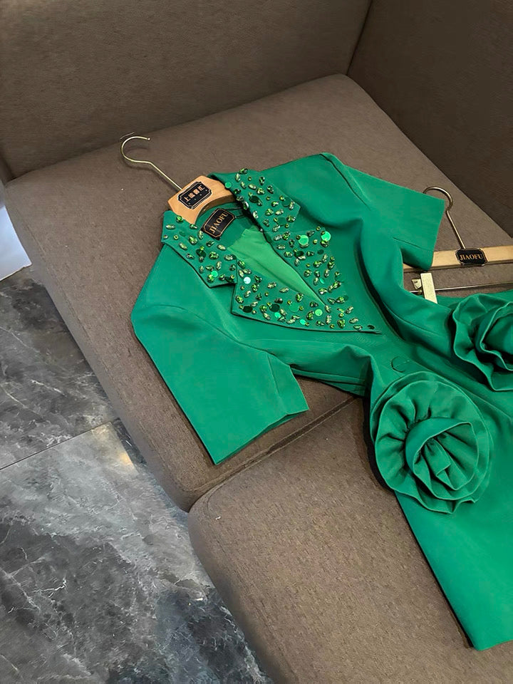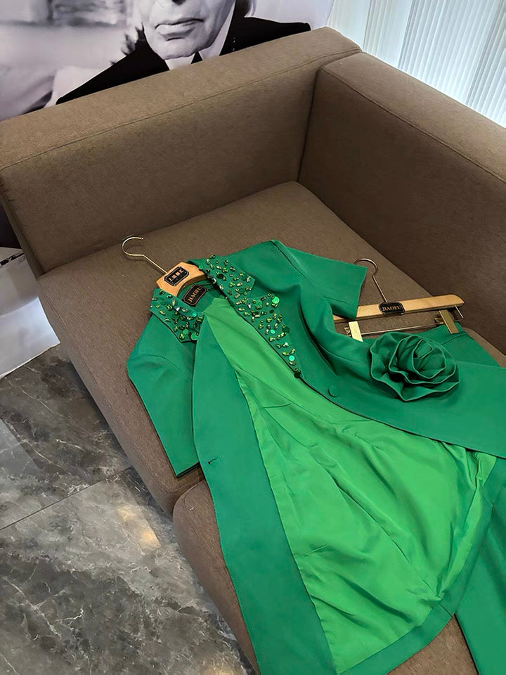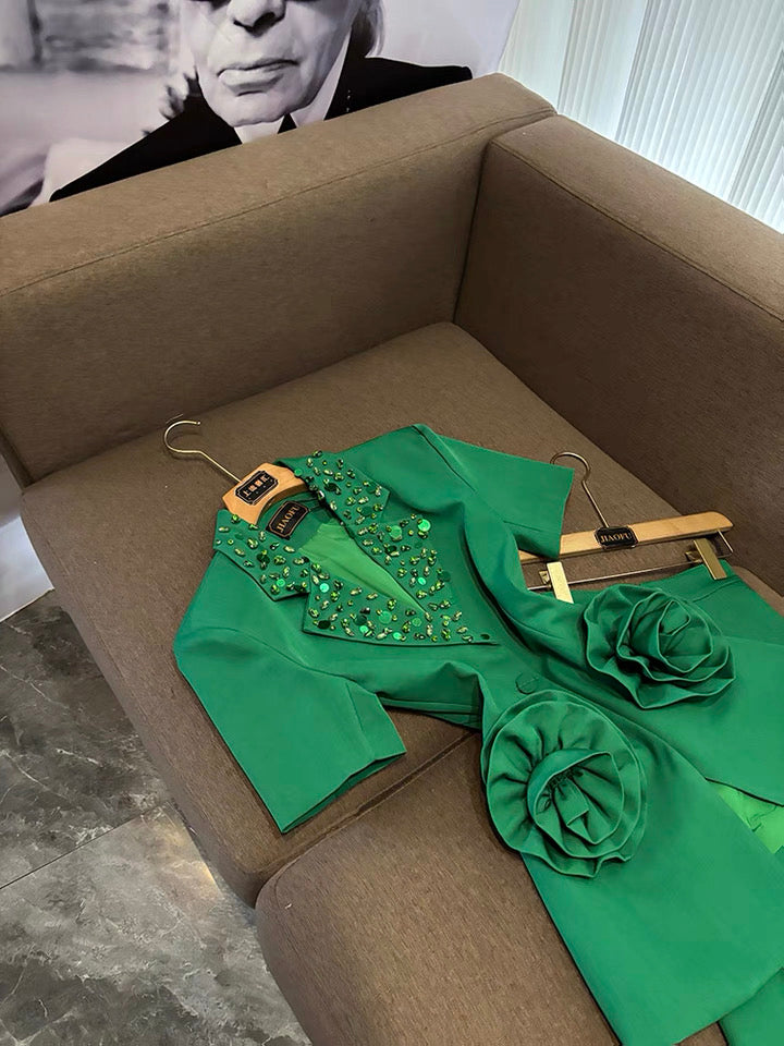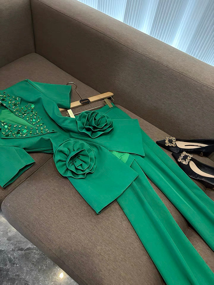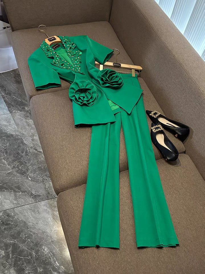 Camélia Flower Blazer Green Suit Set
