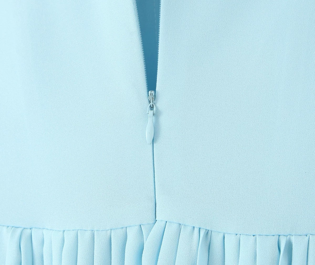 Styling Tip: Wear with statement earrings and clear heels to emphasize the clean, structured silhouette. Opt for an updo to show off the neckline.