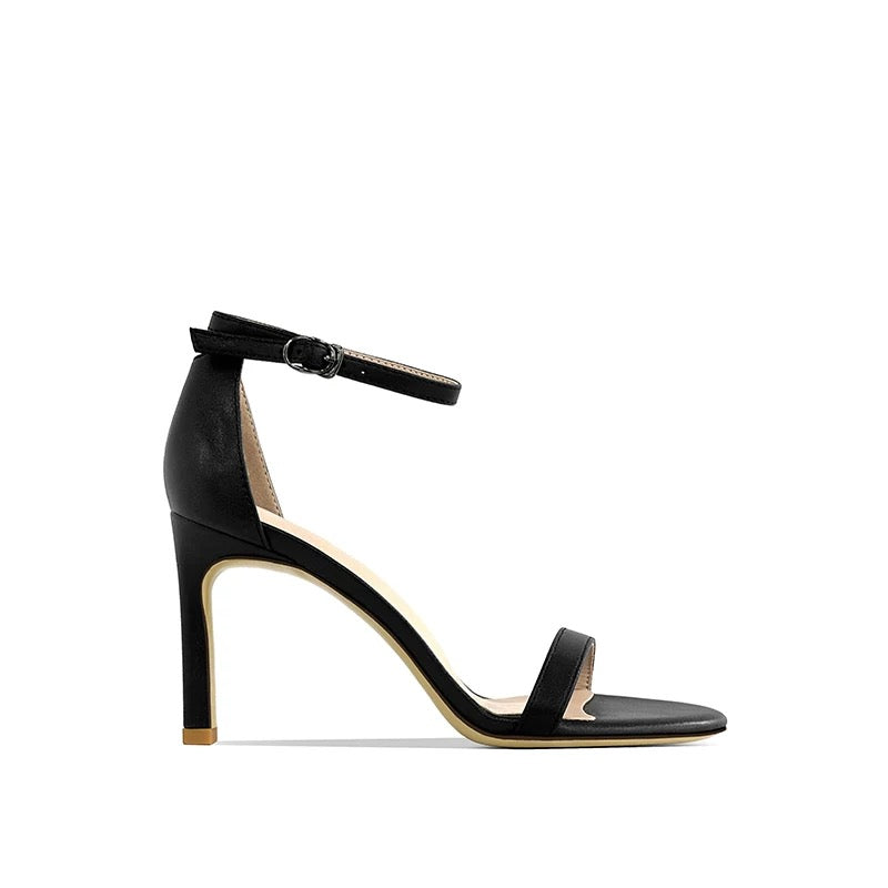 - Slim ankle strap with gold buckle for a secure and feminine fit