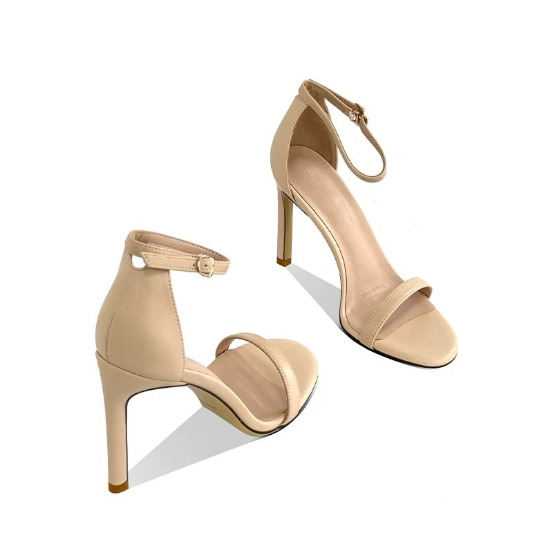 - Slim ankle strap with gold buckle for a secure and feminine fit