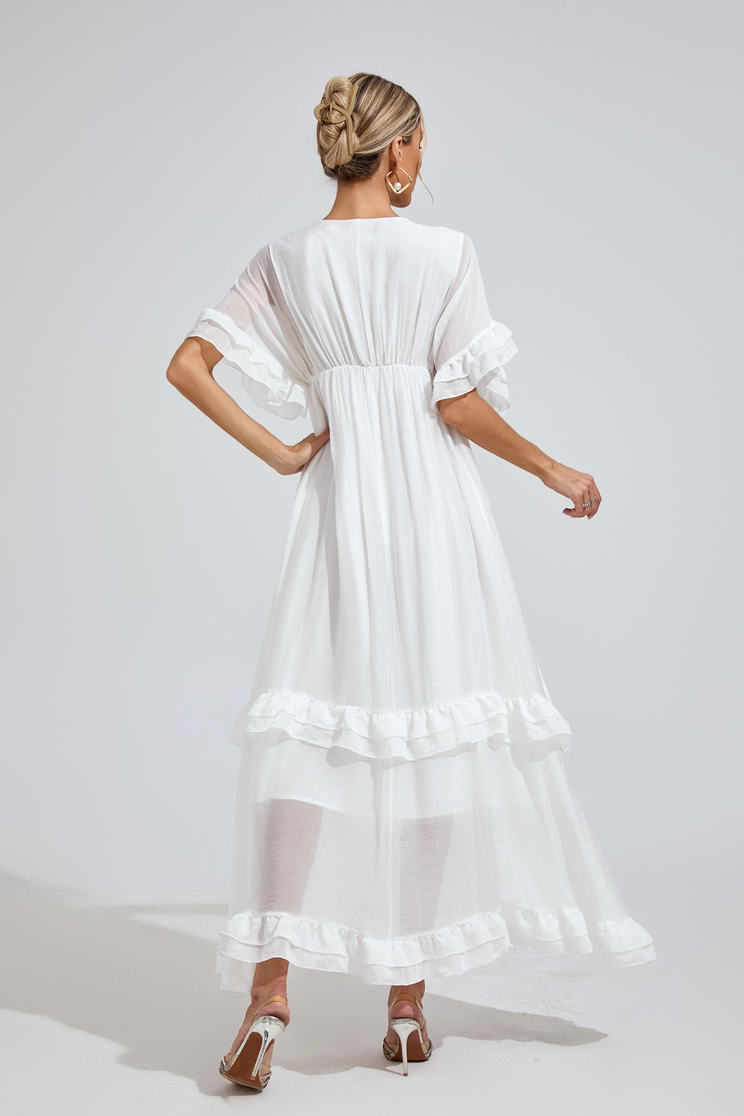 - Elegant gradient fade into white at the hem