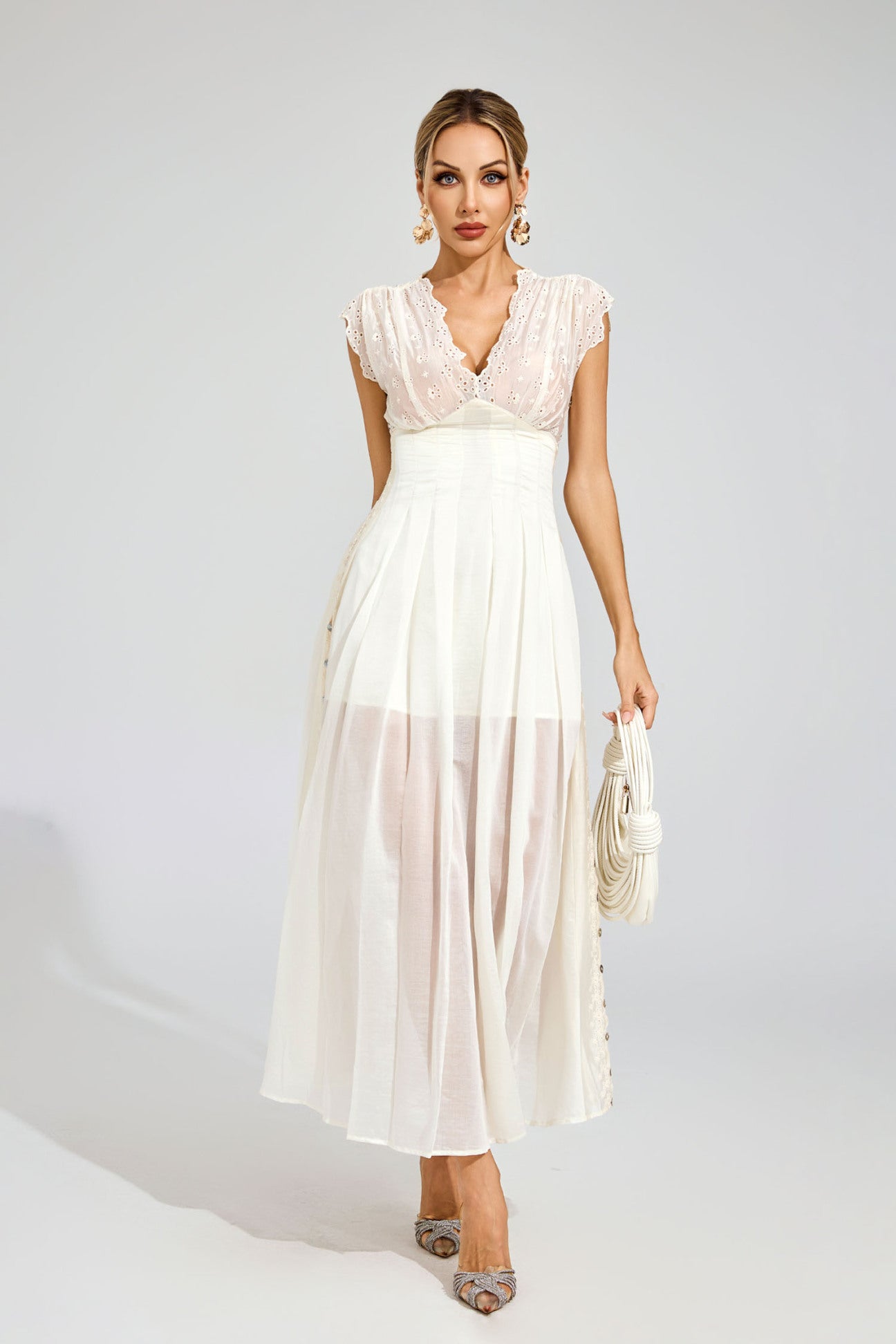 Charming and ethereal, perfect for bridal brunches, romantic picnics, and daytime parties. Pair with floral earrings, soft waves, and neutral heels for a French countryside feel.