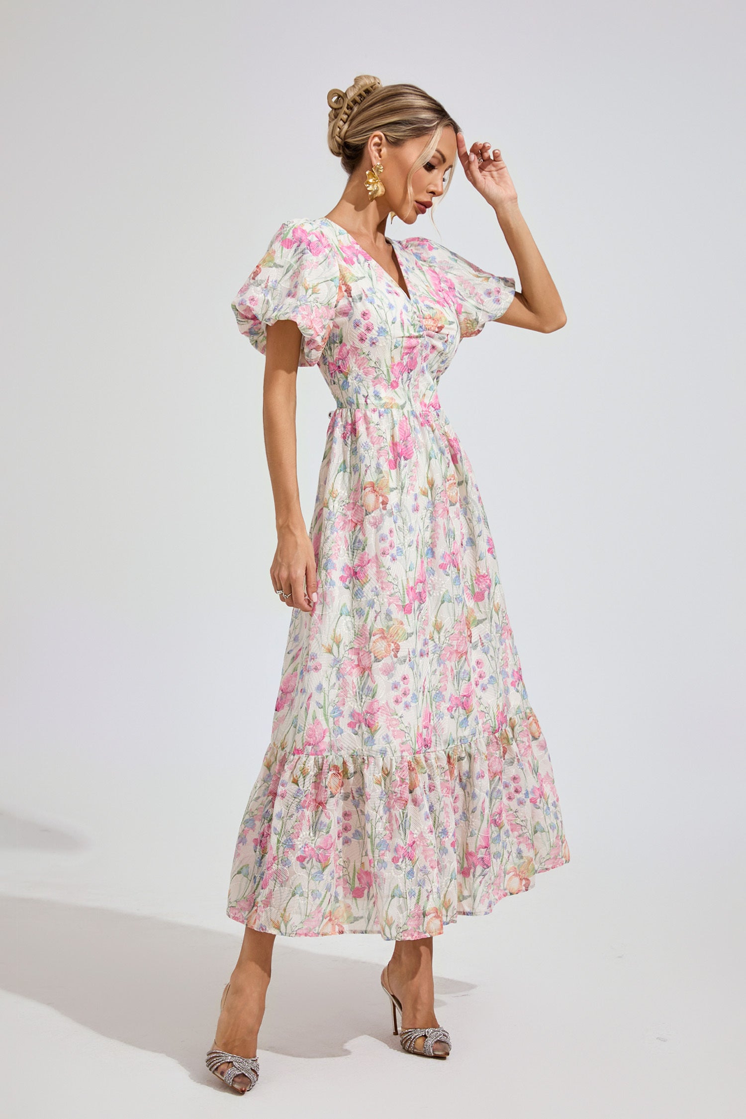 Perfect for spring outings, brunches, romantic garden events, or daytime parties. Its soft print and fluttery shape bring a touch of femininity to any warm-weather gathering.