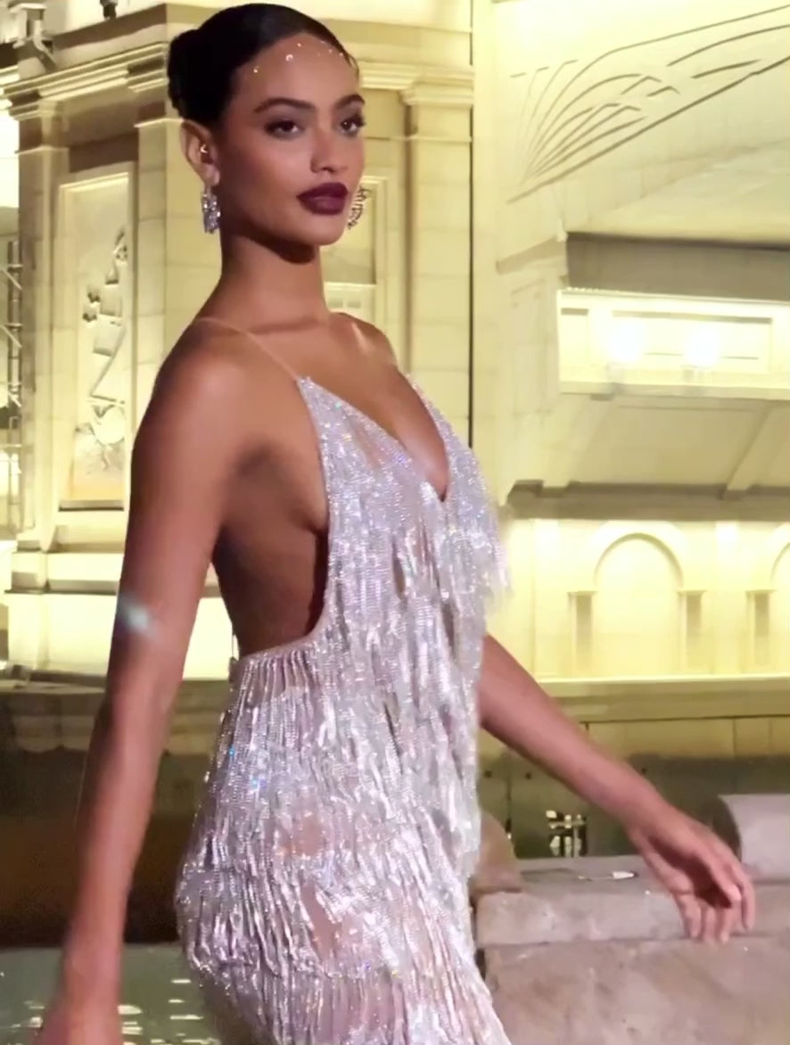 Lia crystal fringe mini dress