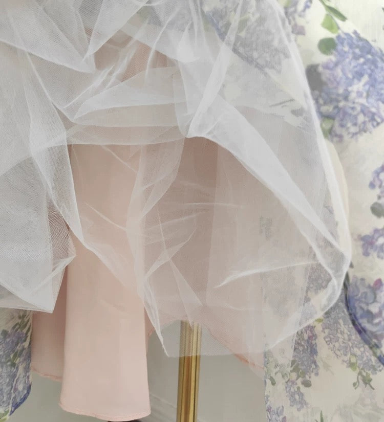 - Skirt: Flowy A-line shape with full pleating, enhanced by the tulle layer underneath