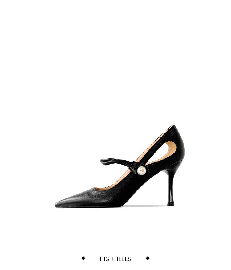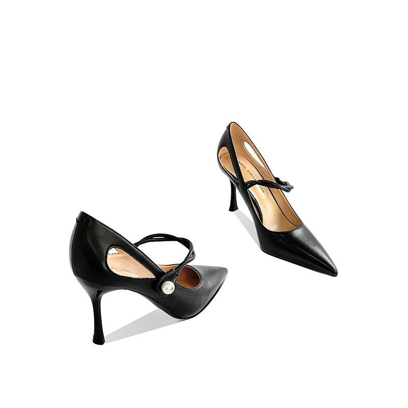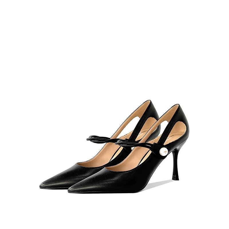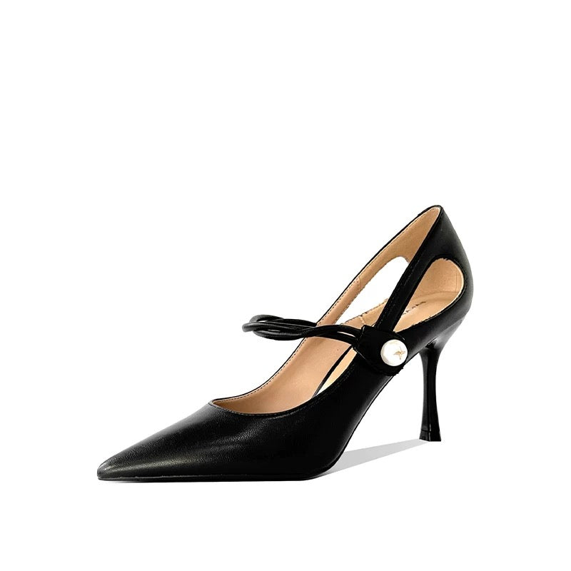 Pearl Detail Black Heels