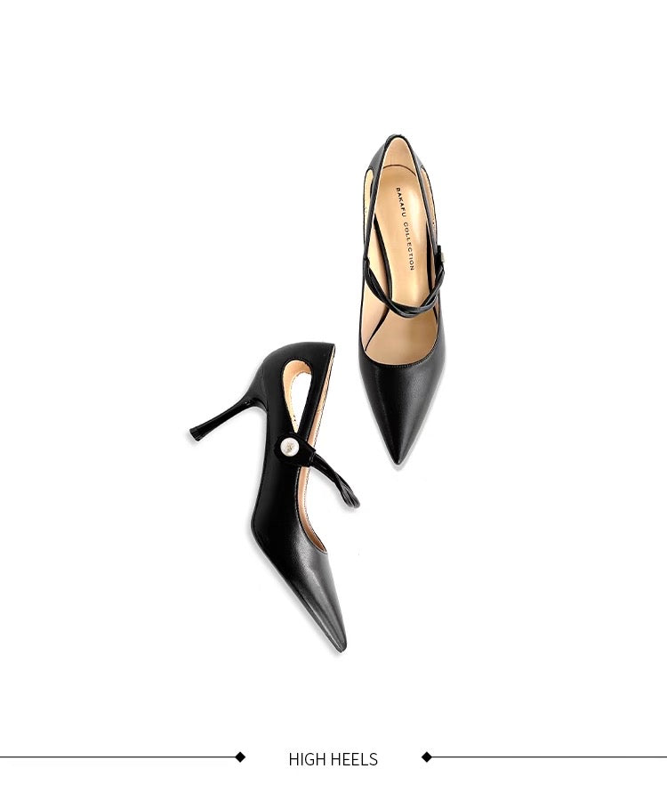 - Slim stiletto heel for added height and grace