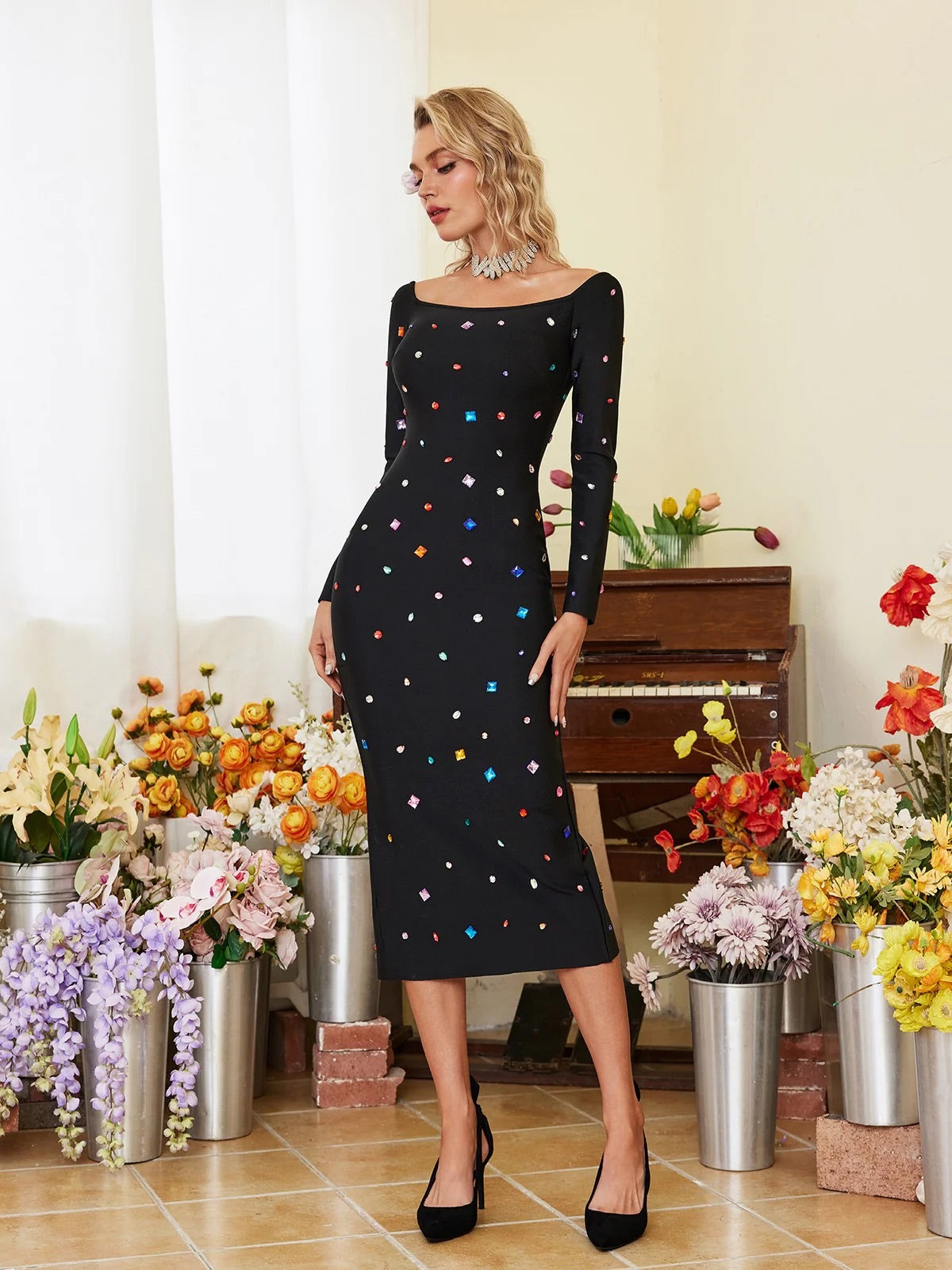 Rhinestones bandage midi dress