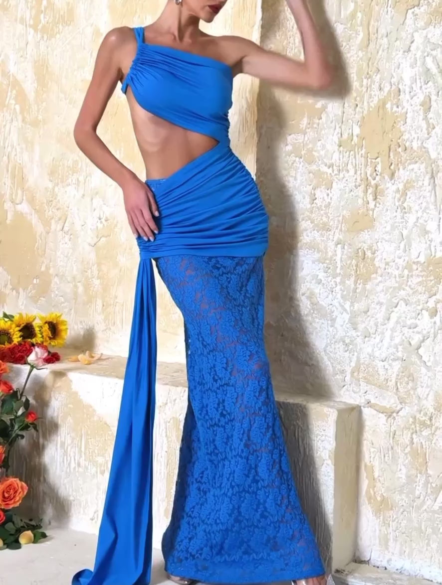 Zahra One-Shoulder Cutout Lace Maxi Dress